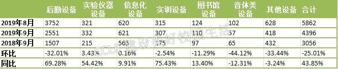 2019年9月教育装备行业中标信息分类图