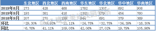 2019年9月招标采购信息地区统计图