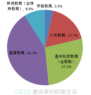 9月份招标采购信息所属领域统计情况如上图所示:学前教育占比为3.5%;义务教育占比为17.7%;高中阶段教育(含职教)占比为27.2%;高等教育占比为42.7%;其他教育(含特殊教育)占比为8.9%。