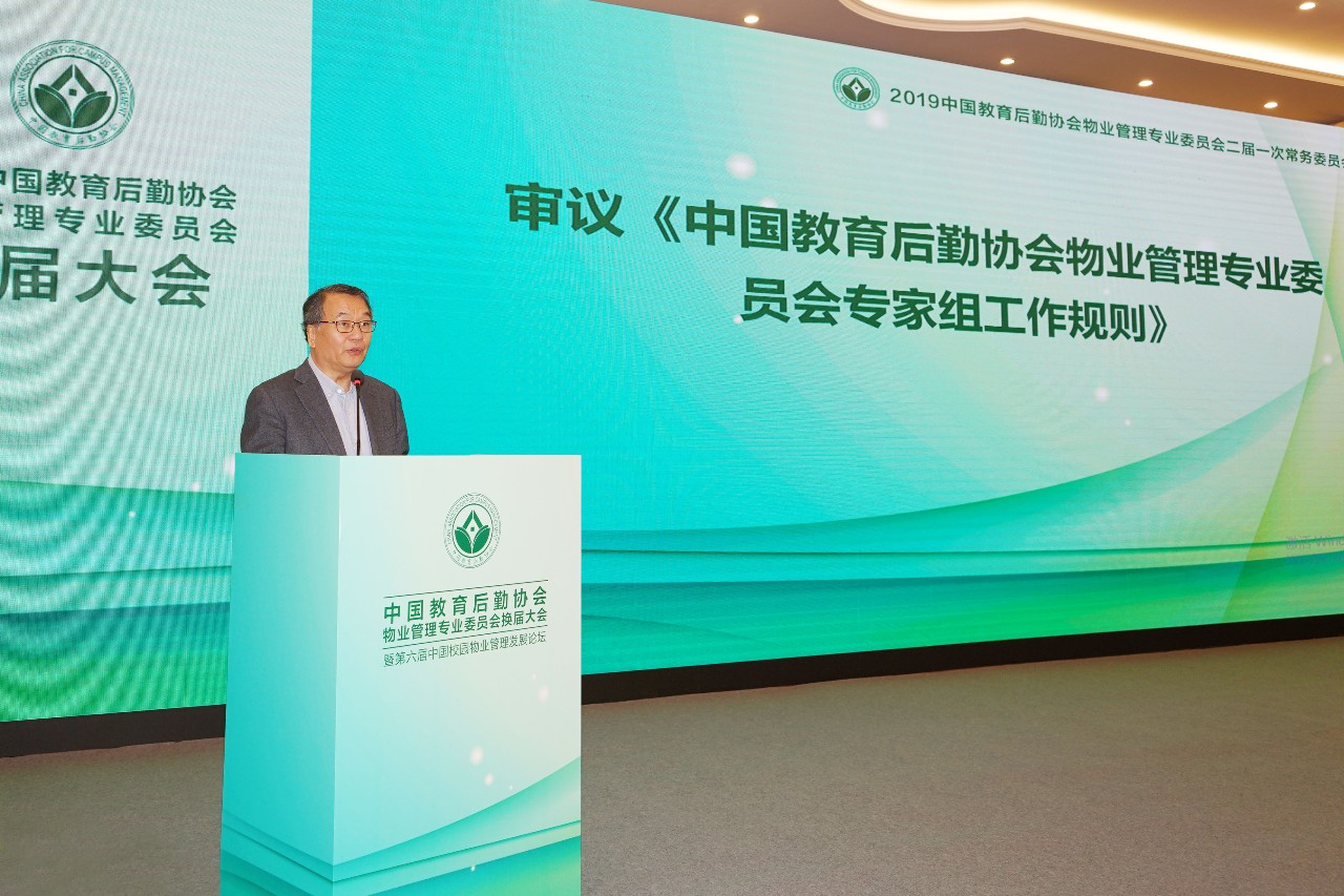 他对新一届物专会提出深切希望,希望新一届专委会与时俱进,再接再厉,以习近平新时代中国特色社会主义思想为指导,认真学习和深刻领会党的十九届四中全会关于推进国家治理体系和治理能力现代化的重大意义和总体要求,把四中全会精神贯彻落实到教育后勤行业组织的工作中。要充分认识到,社会组织管理是国家治理体系和治理能力的重要组成部分,中国教育后勤协会及其专委会作为全国性教育后勤行业组织,承担着规范行业秩序、反映行业诉求、提供行业服务、承接政府职能转移、维护行业稳定、促进行业健康发展的重要职责和使命。物专会要充分发挥校园物业管理组织体系的特色和优势,加强自身组织建设,积极推进组织管理体系和能力现代化。不断提高科学办会、民主办会、依法办会水平和管理服务能力;要确保物专会领导班子和工作人员遵纪守法、遵守章程、恪守组织的性质和宗旨、坚持用服务教育、服务行业、促进事业发展来凝聚委员、团结委员;反映委员诉求、维护委员利益、规范委员行为、汇集委员智慧、完善专委会管理制度、议事规则,健全专委会的决策机制、执行机制,加强专委会工作团队建设,完善担当作为的激励机制。希望新一届物专会认真总结经验,根据新形势,结合自身的情况和行业组织的职能要求,倾心谋划好自身业务领域的工作,积极搭建平台、增进交流、提供服务,多形式、多渠道开展丰富多彩的行业活动,引领行业改革和发展。结合自身业务特色,以创造性的思维、严谨务实的态度积极开展工作,加快开展校园行业标准规范研制工作,为校园物业服务市场开放与规范监管创造条件,提供依据,奠定基础;整合教育后勤系统内外的各类优质资源,搭建平台,探索打造校园物业服务管理开放、合作、互动、共赢的协同创新发展体系,引入校园物业服务新模式、新理念、新业态、新科技,特别要重视利用移动互联网技术,树立智慧校园物业管理理念思维,努力推动传统物业管理与现代技术相融合,实现校园物业服务管理模式的转型升级,为实现教育现代化,做出应有贡献。