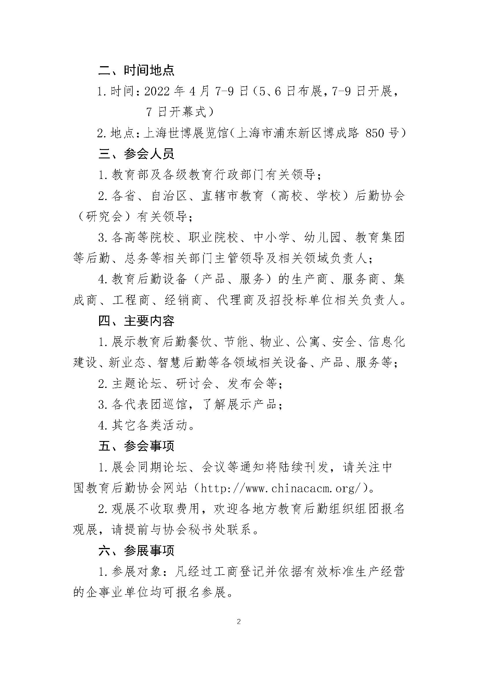 1.展会同期论坛、会议等通知将陆续刊发,请关注中国教育后勤协会网站。