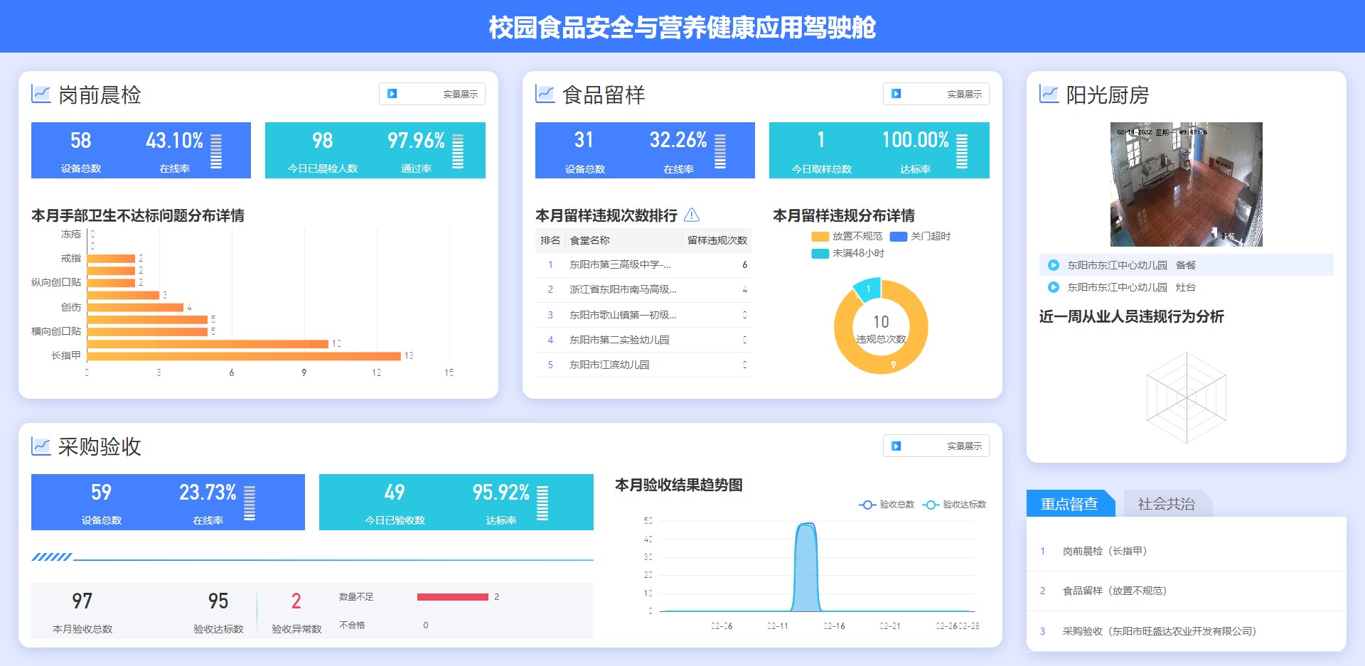 集成全场景数据构建食安驾驶舱,在实现信息可视化的同时,也满足了管理者的监管需求。