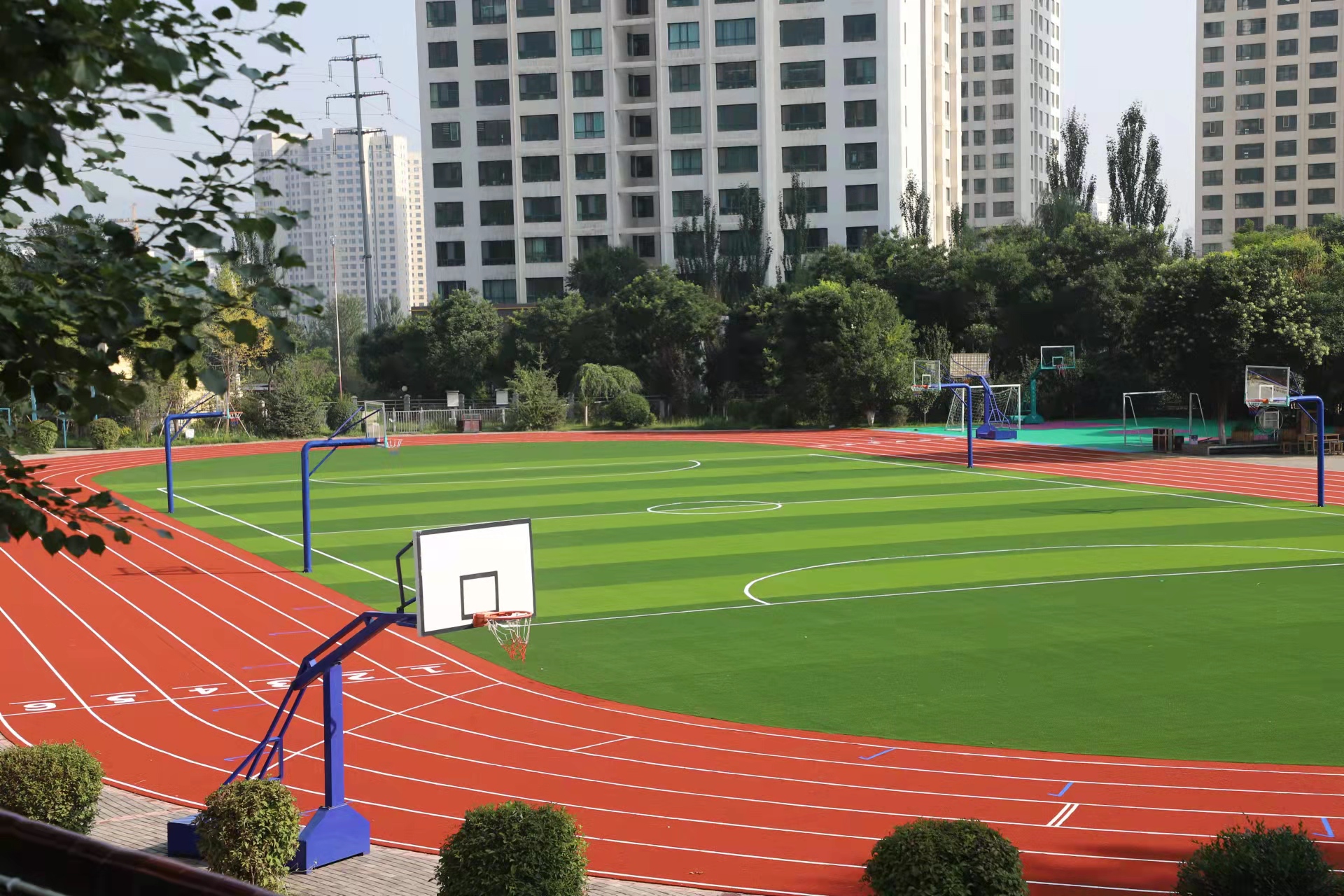 上海多利隆作为该工程方负责从设计、地平、草坪铺装到后期的场地围网、射灯等所有环节,展现了一站式服务厂商的实力。