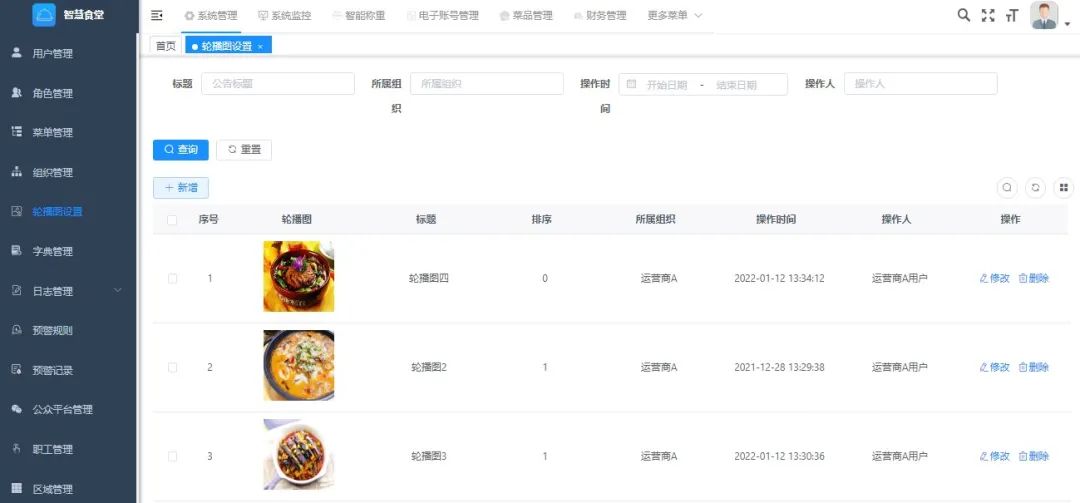 提供菜品食物分类设置,支持增加、删除、更改菜品;