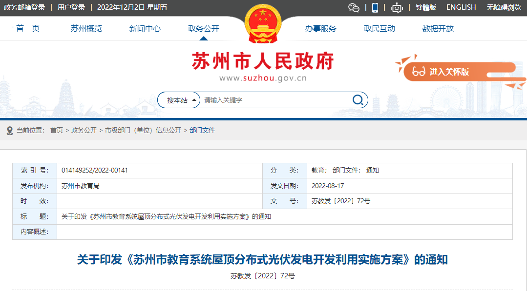 ▲苏州《苏州市教育系统屋顶分布式光伏发电开发利用实施方案》