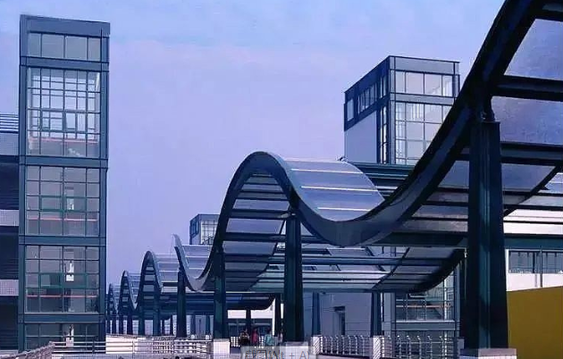 上海海洋大学停车棚,装机容量150kw,占面积1600平方米,共采用了5个30kw的逆变器。此项目中的光伏系统,在满足遮阳的同时还要考虑挡雨的功能,所以在组件接缝处,采用了专用压板和防水机构。
