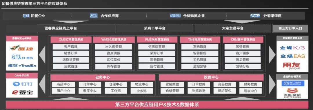 与此同时,多数高校均已在前端“订餐+支付+取餐”环节使用了多种工具组合、智能设备,提高就餐效率、降低损耗;在中端,团餐企业为经营提效,加速布局商业智能管理系统、人事财务管理系统;在后端,5%的头部企业已自建统一的云端供应链管理平台,其余95%均使用第三方系统,且高达60%的企业同时使用3家以上服务商的供应链管理工具,模块集中在进销存、食品安全追溯环节。