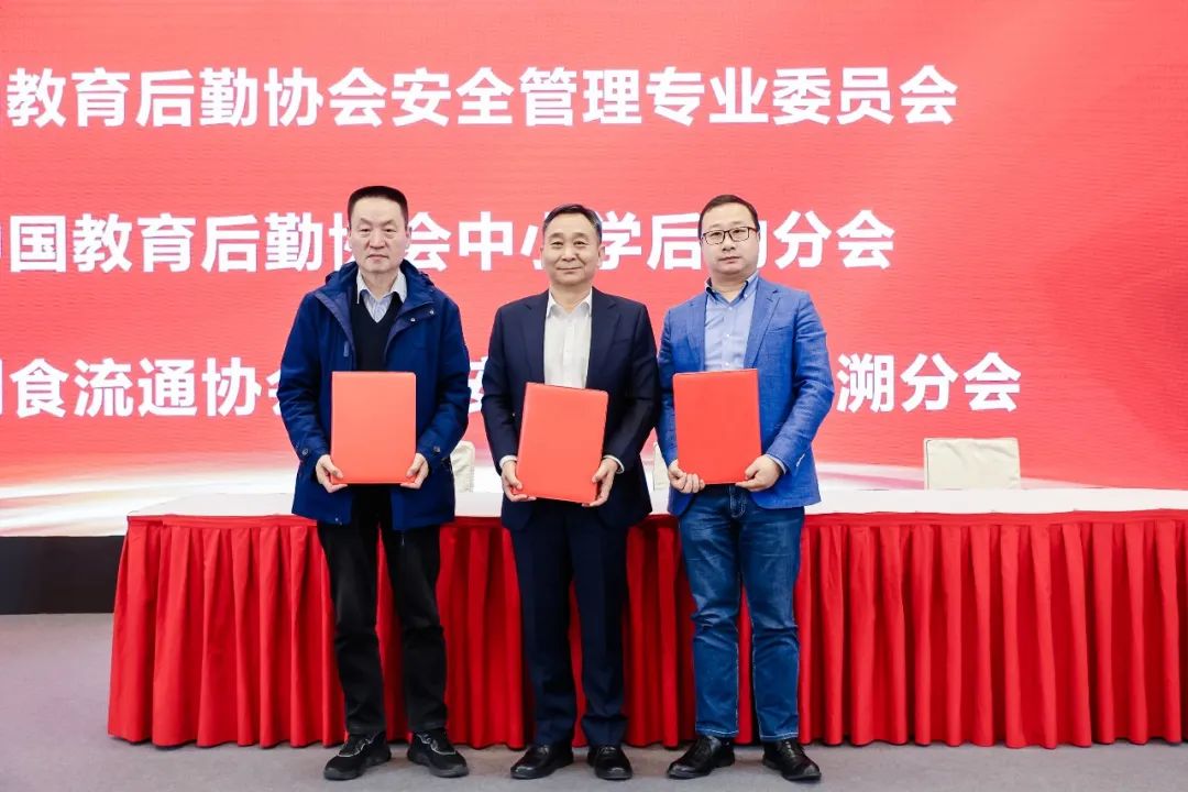 为更好地搭建平台、增进交流、提供服务,探索打造更加高效、互动、共赢的教育后勤安全管理体系,中国教育后勤协会安全管理专业委员会、中国教育后勤协会中小学后勤分会、中国副食流通协会食品安全与信息追溯分会达成三方战略合作意向;北京邮电大学、微诺时代(北京)科技股份有限公司达成双方战略合作意向;中国农业大学、电子政务建模仿真国家工程实验室达成双方战略合作意向。