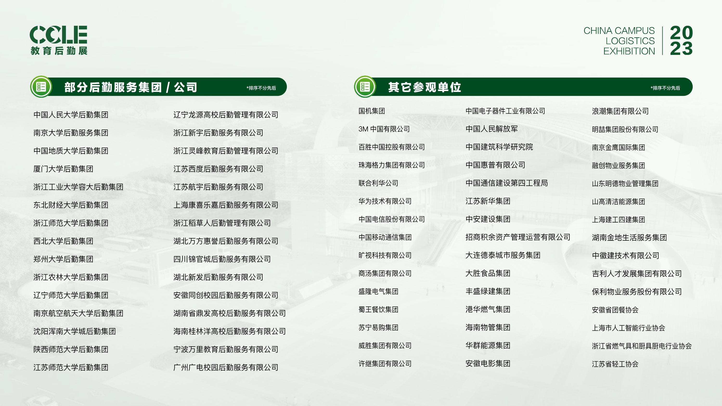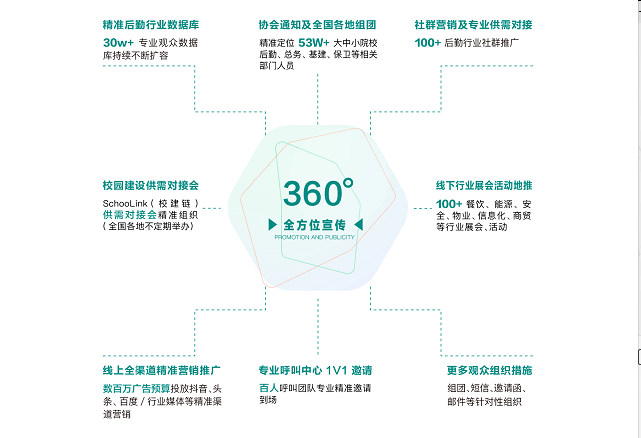 专注校园管理服务,涉及校园餐饮、能源、安全、信息化、物业、公寓、商贸、建设与修缮等方面,已发展成为全国教育后勤领域品类最全、专业度最高、影响力最大的“大后勤生态交流圈”。