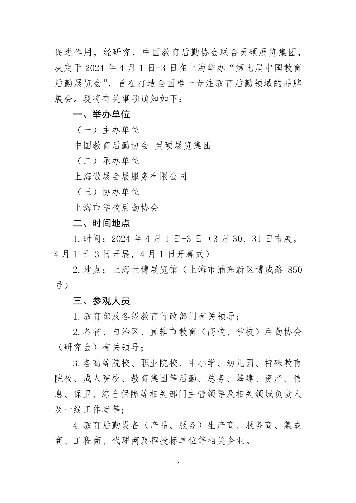 为深入开展学习贯彻习近平新时代中国特色社会主义思想主题教育,落实民政部《关于开展全国性行业协会商会服务高质量发展专项行动的通知》精神,培育一批服务行业发展的品牌项目,搭建便捷、高效的行业沟通交流平台,充分展现数字技术、智能装备、清洁能源、物联网等新产品、新技术、新成果、新理念在校园场景中的应用,助力各级各类院校构建“大后勤、大系统、大保障、大服务”现代新型后勤保障体系,提高治理能力现代化水平,提升大后勤服务质量和运营效率,发挥高质量后勤保障对实现教育现代化的促进作用,经研究,中国教育后勤协会联合灵硕展览集团,决定于2024年4月1日-3日在上海举办“CCLE