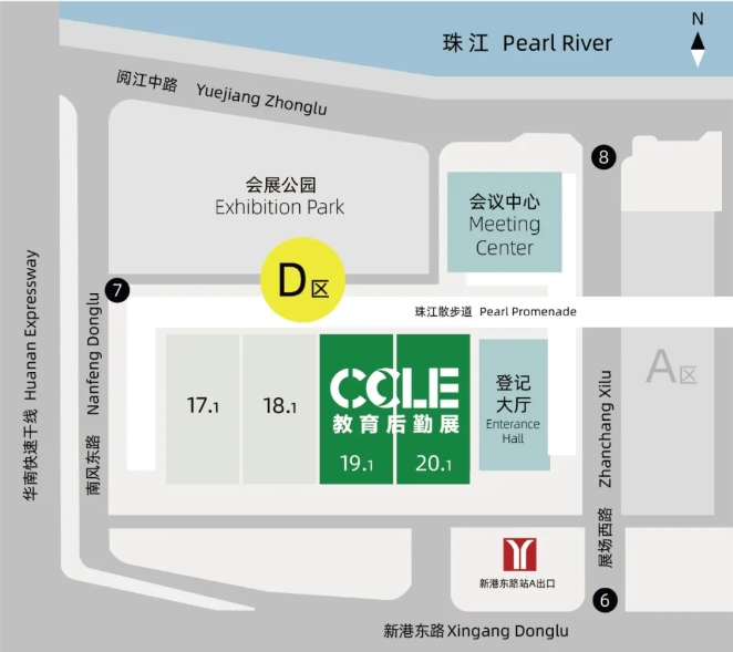 地铁:8号线新港东站A口下车,步行即可到达展馆D区。
