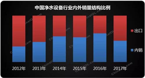 2017年国内净水行业龙头企业基本确定,但市场仍在洗牌,部分中游企业反应2017年未达预期。随着市场基数加大,内销市场增速略有减缓,增长速度收窄,但总体增势继续维持,海外市场表现良好。