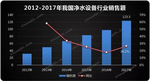 近几年,水质问题频发,净水设备高速发展,逐渐成为生活刚需品。从历史数据来看,2013年之后净水销售市场的增幅随着基数不断增加呈下降趋势,增幅逐渐收窄,2017年有所回升,行业龙头的渠道铺货成效显著。