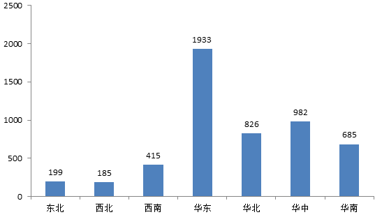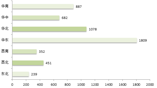 从7月招标采购信息地区统计图和全国招标采购信息量地区占比图可以看出:华东地区招标采购信息量为1809条,占比33%;华北地区招标采购信息量为1078条,占比20%;华南地区招标信息采购量为887条,占比16%;华中地区招标采购信息量为682条,占比13%;西北地区招标采购信息量为451条,占比8%;西南地区招标采购信息量为352条,占比6%;东北地区招标采购信息量为239条,占比4%。