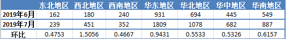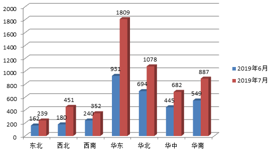 2019年7月全国招标采购信息量地区统计分析图