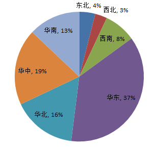 从7月中标信息地区统计图和全国中标信息地区占比图来看:华东地区中标信息量为1935条,占比37%;华中地区中标信息量为982条,占比19%;华北地区中标信息量为826条,占比16%;华南地区中标信息量为685条,占比13%;西南地区招中标信息量为415条,占比8%;东北地区中标信息量为199条,占比4%;西北地区中标信息量为185条,占比3%。