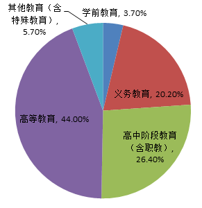7月中标信息所属领域统计图,如上图所示:学前教育占比为3.7%;义务教育占比为20.2%;高中阶段教育(含职教)占比为26.4%;高等教育占比为44.0%;其他教育(含特殊教育)占比为5.7%。